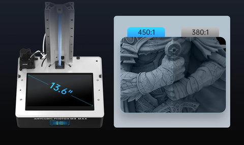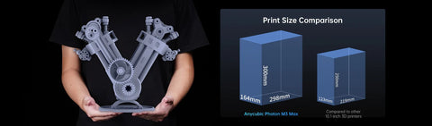 Equipped with a 13.6-inch large screen, the Photon Mono M3 Max offers a building size of 300 x 298 x 164 mm and a printing volume of 14.7 liters, allowing you to unleash your creativity without limits.