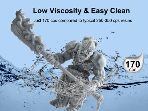 2. Low Viscosity and Peel Force: The resin has low viscosity and low peel force, which allows for high-speed printing and is ideal for large printers. It supports high-resolution prints and works excellently on large format printers, including 8K capability.