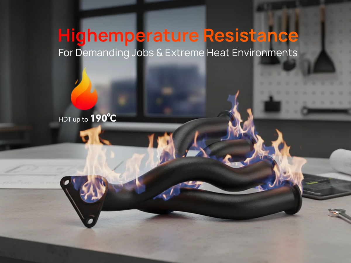 Extreme Heat Resistance (190°C HDT): Built for under-hood automotive, aerospace, and industrial parts.