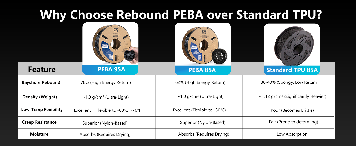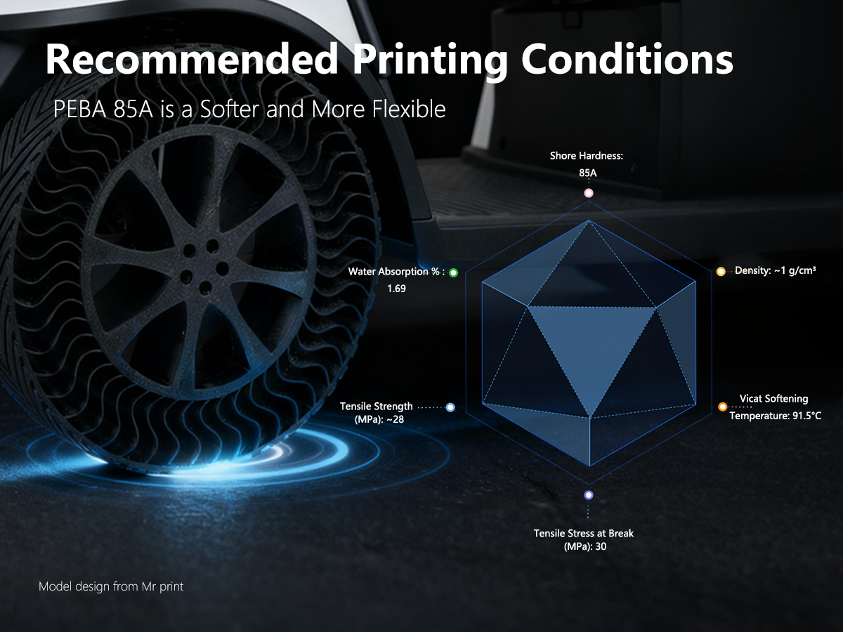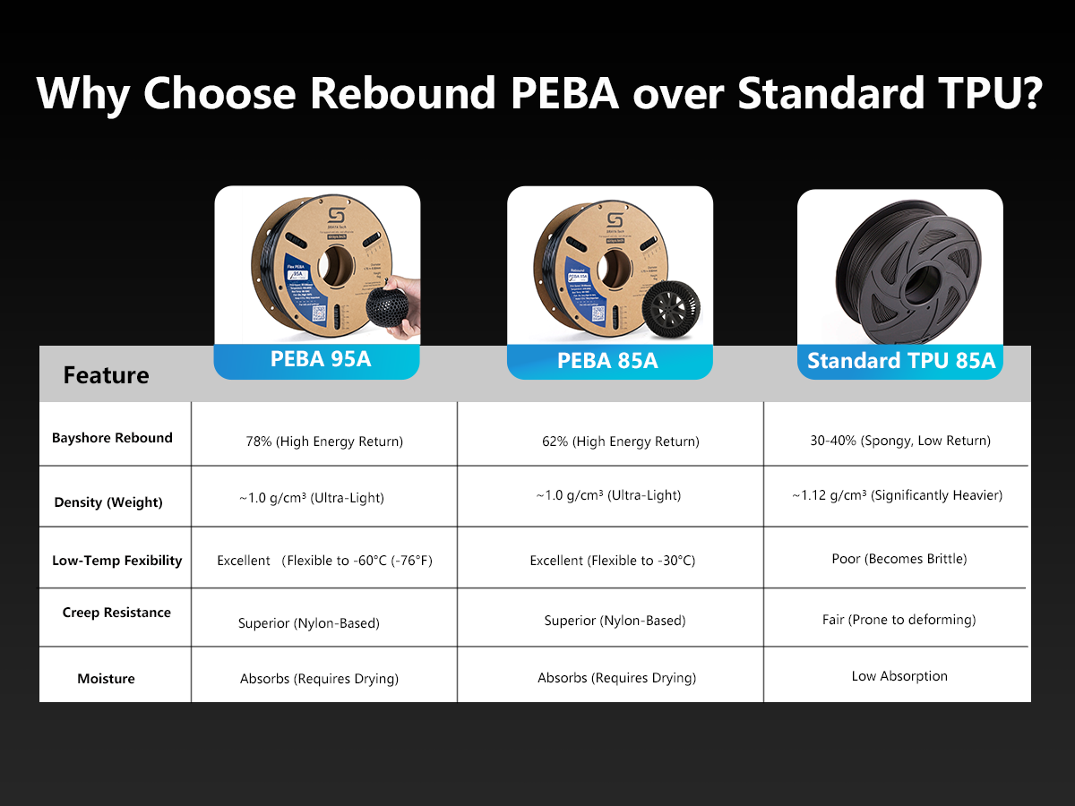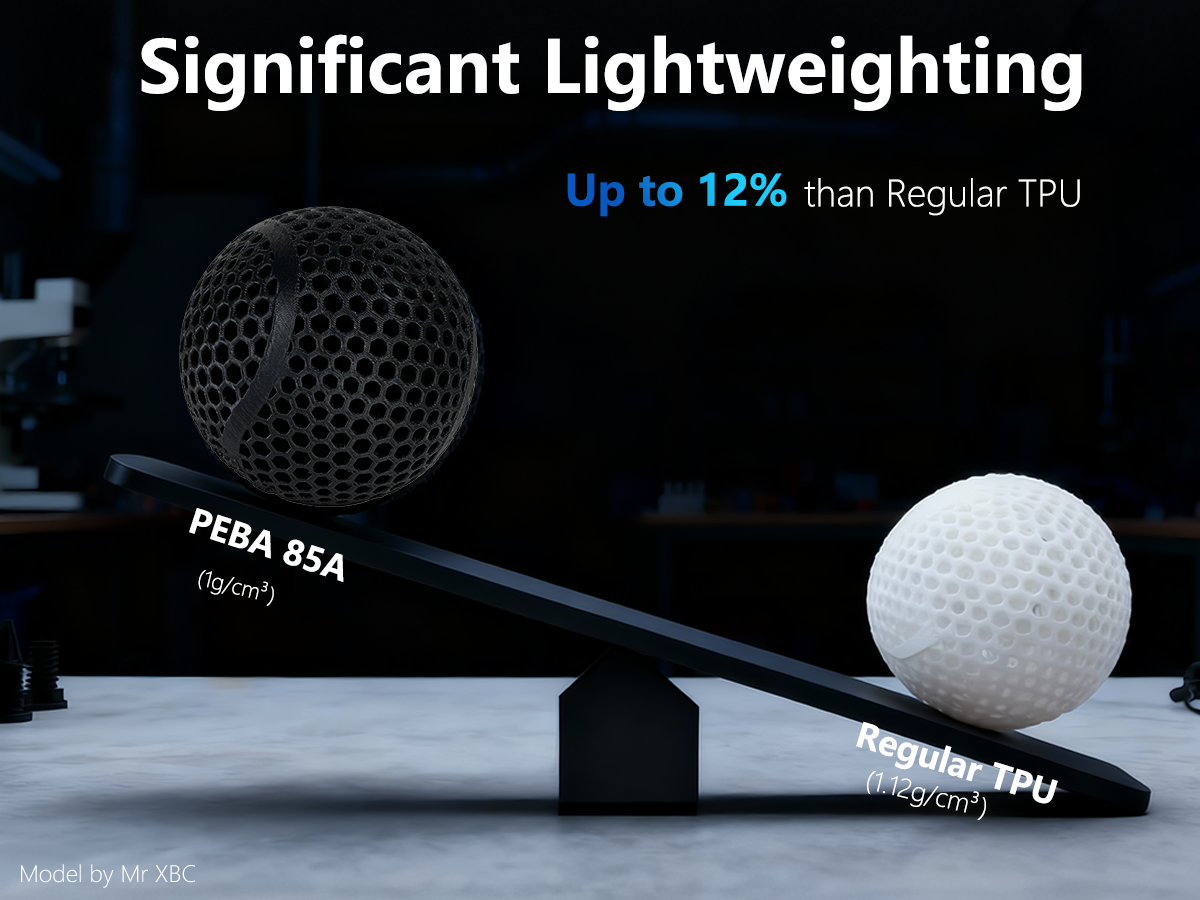 PEBA 85A delivers true elasticity and instant rebound, far beyond standard TPU.