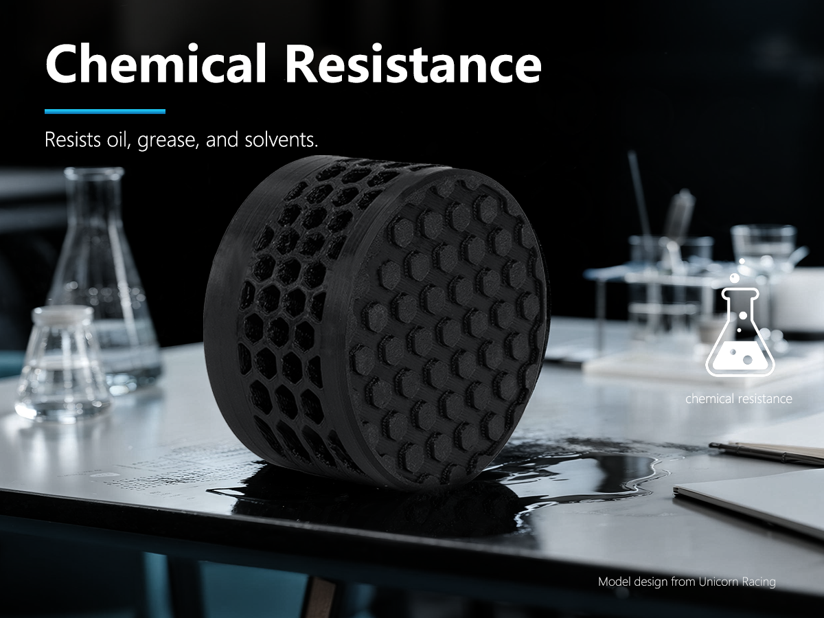Thanks to its nylon-based backbone (PA12), PEBA 85A resists: