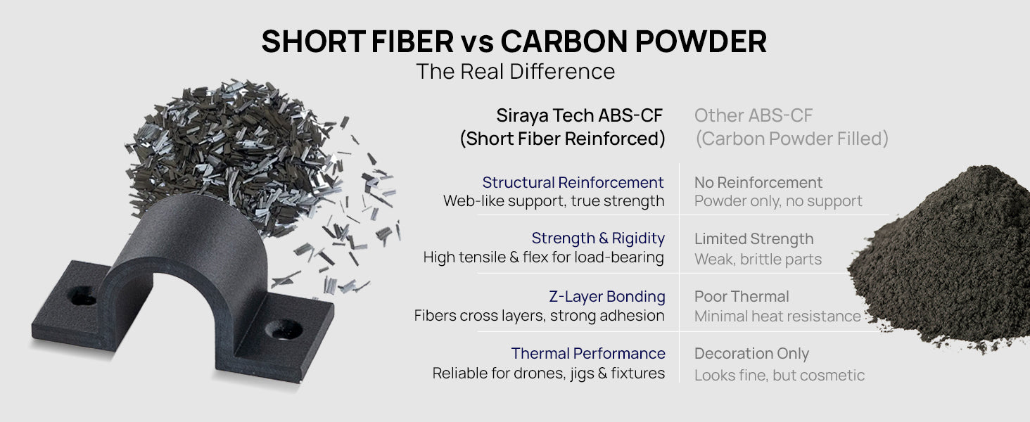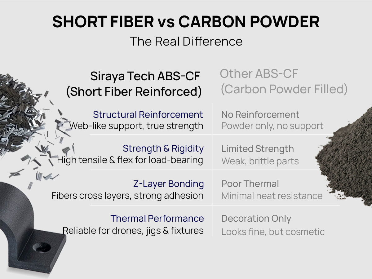 比類のない強度: 粉末状のリサイクルカーボンファイバーを使用する競合他社とは異なり、真の構造強化のために 10% のチョップドカーボンファイバーを特徴としており、標準的な ABS を上回る並外れた強度と耐衝撃性を実現します。