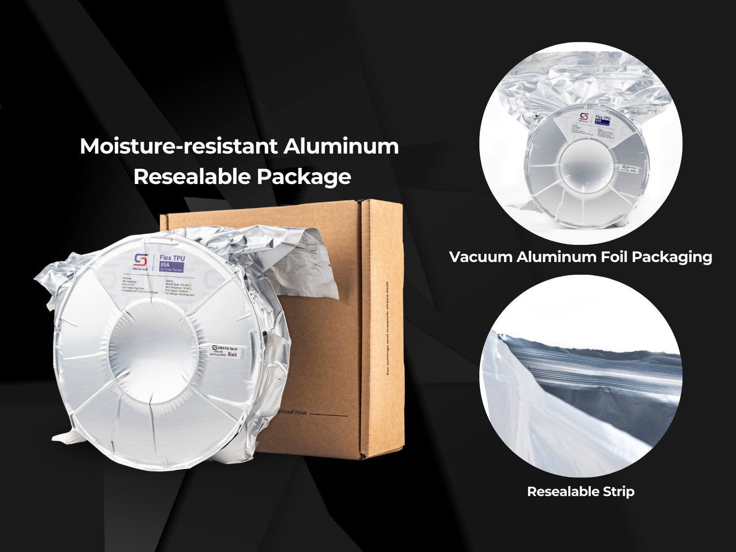 Note: Although PET-GF prints have very low moisture absorption, raw Filament is still sensitive to humidity. Store unused filament in sealed packaging with desiccant. It will be better if it can be stored in a dry box or a dryer.