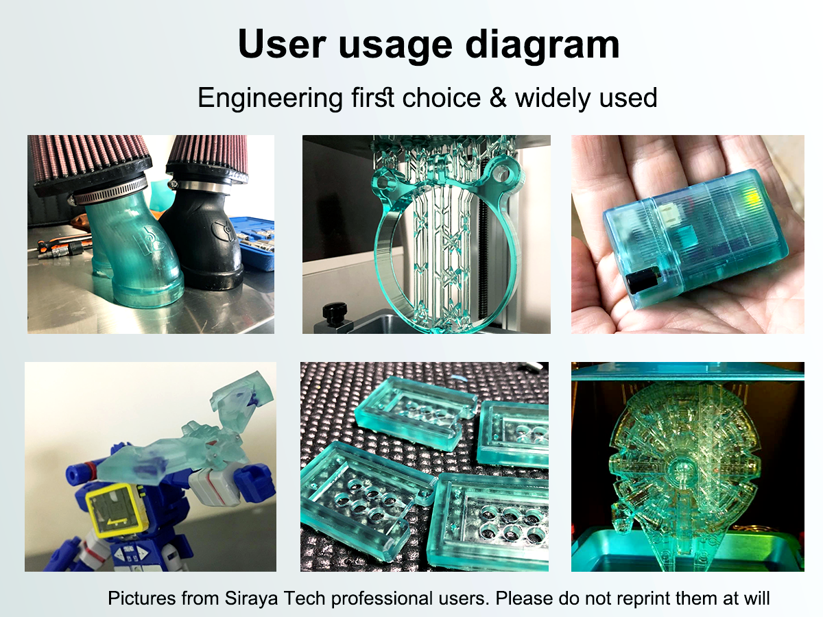 Blu tough resin is not only suitable for some small functional parts that needed good strength without being brittle, like tools, screws, brackets, bases, etc, but also can print pretty 3d models. And is compatible with most LCP and DLP 3D printers and is 8K/12k compatible.