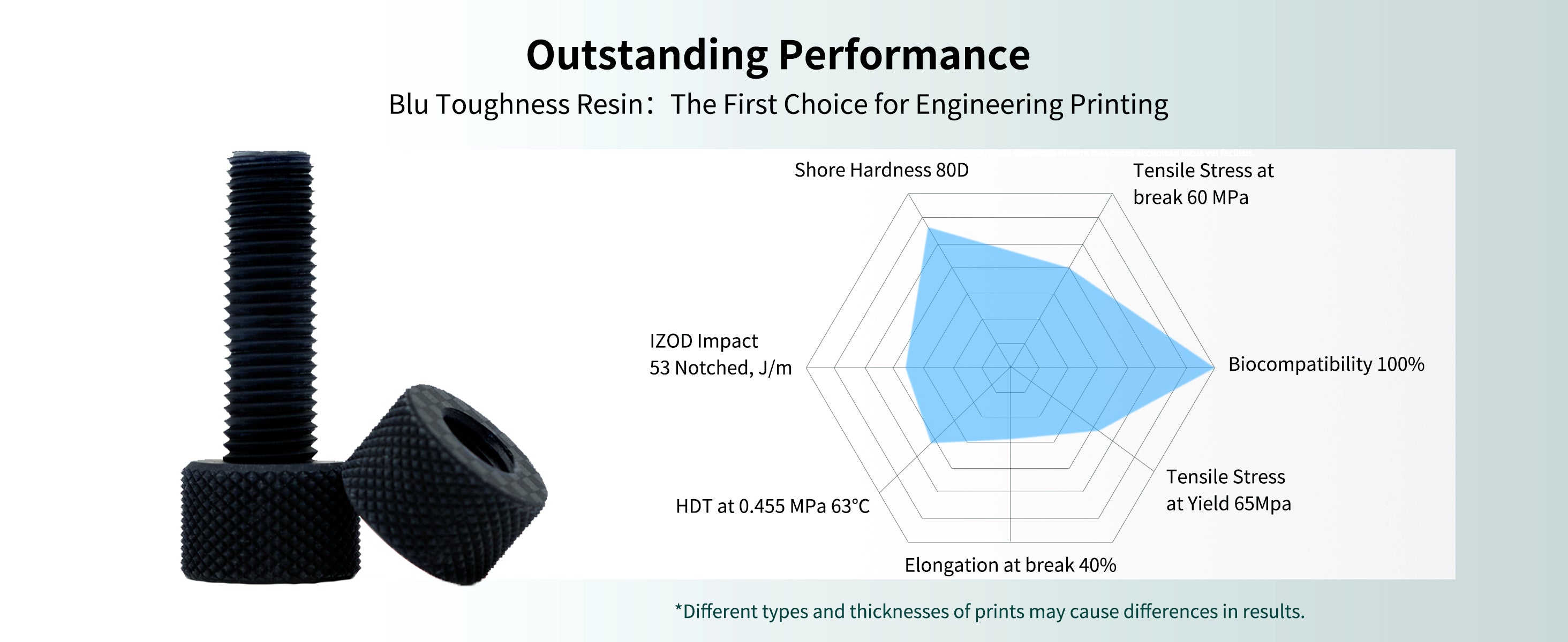 If you want a resin with an excellent balance of hardness and toughness, Tough Blu is your best choice!