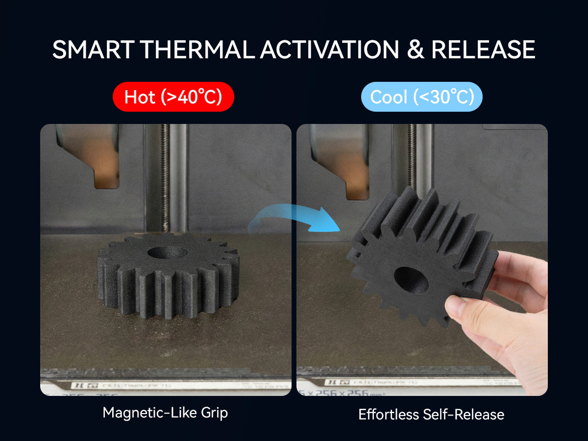 Grip activates at temperatures above 40°C, providing a powerful "molecular shield" that secures your first layer. Once the bed cools below 30°C, the bond automatically releases, allowing parts to pop off effortlessly without damaging your PEI or glass surface.