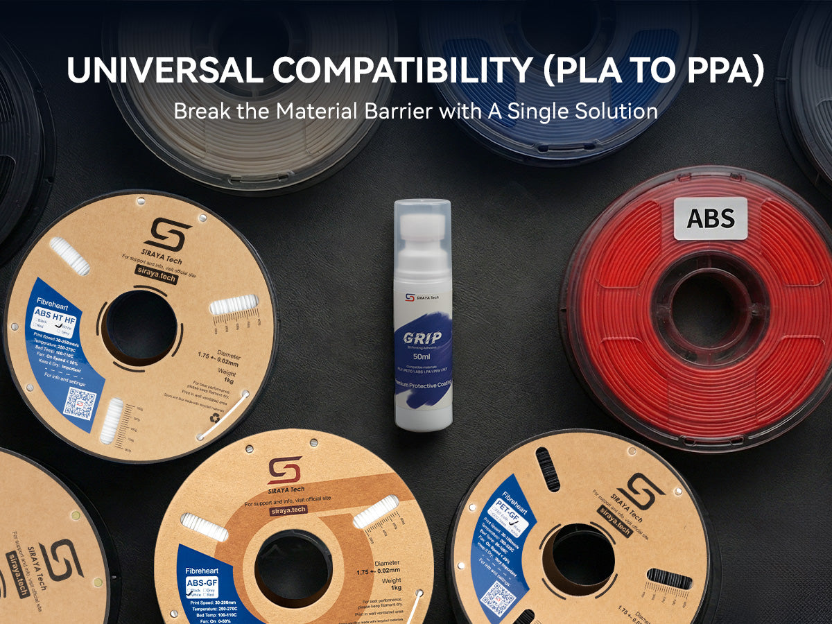 The perfect companion for Siraya Tech Fibreheart™️ series (PPA-CF/GF, PAHT-CF). Whether you are printing hydrophobic engineering plastics or standard PLA, Grip ensures your print stays exactly where it belongs.