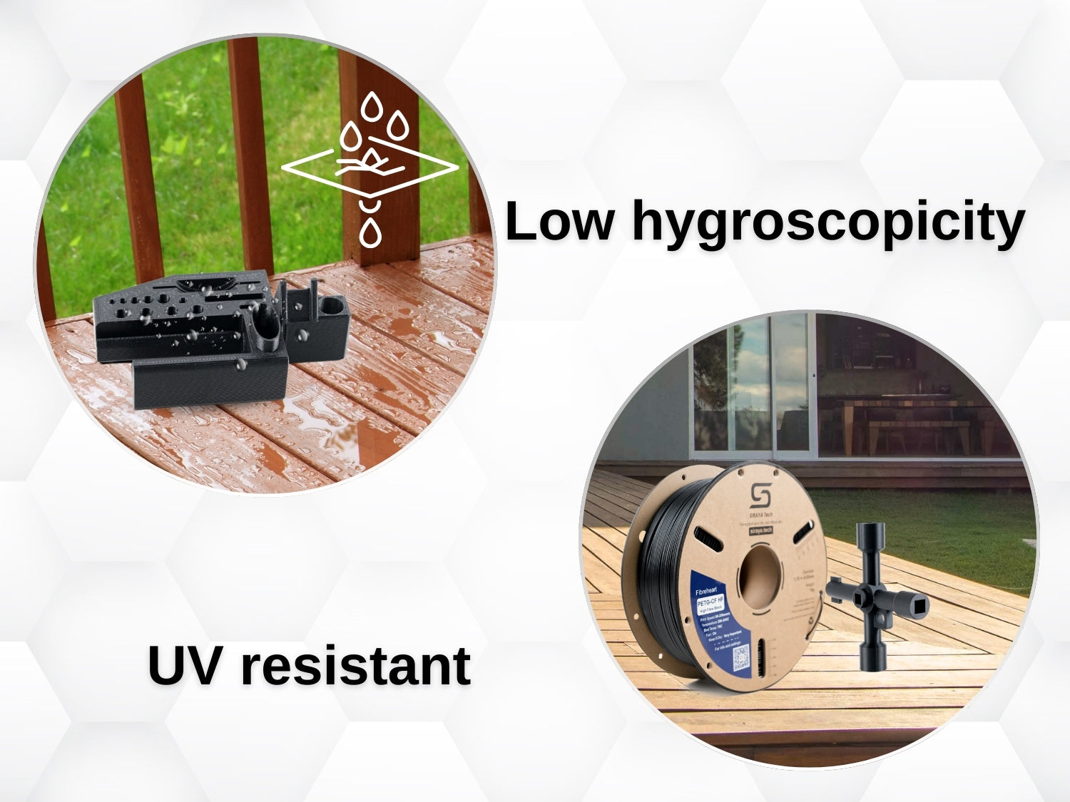 Designed for outdoor applications, PETG-CF is UV resistant, moisture resistant, and chemical resistant, ensuring long-lasting durability.