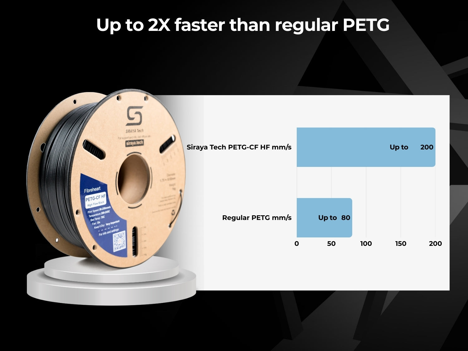 - Compared to standard carbon fiber PETG, PETG-CF HF is optimized for high-speed extrusion, allowing speeds of up to 150-200mm/s.