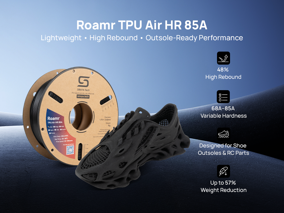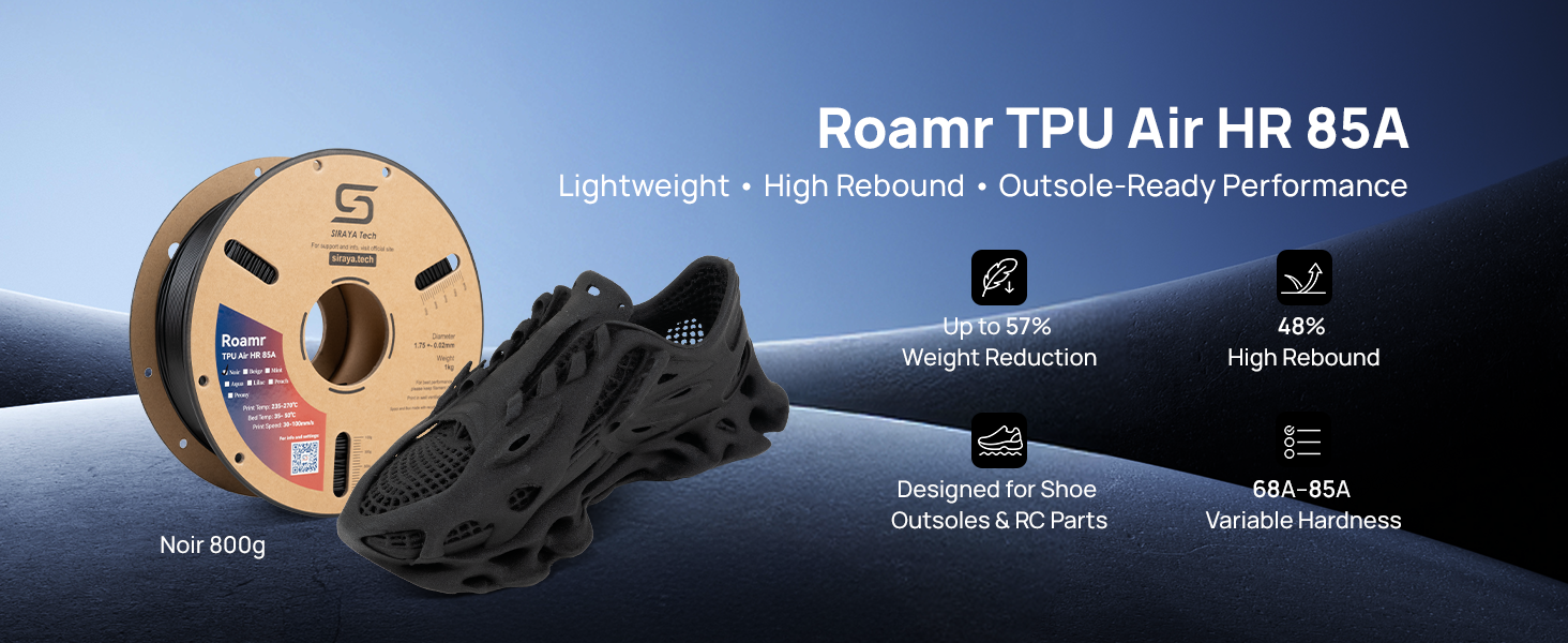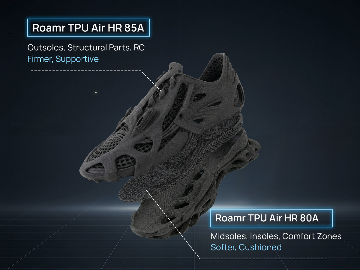 Roamr TPU Air HR 85A is a structural foaming TPU within the Roamr series, specifically engineered for high-stress, high-wear, and critical support zones in footwear.
