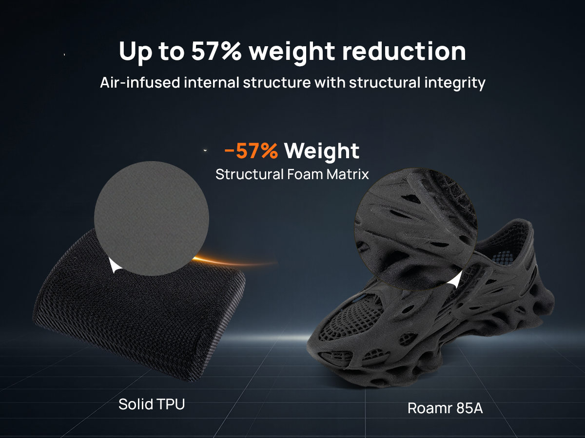 Achieve up to a 57% weight reduction compared to solid TPU.