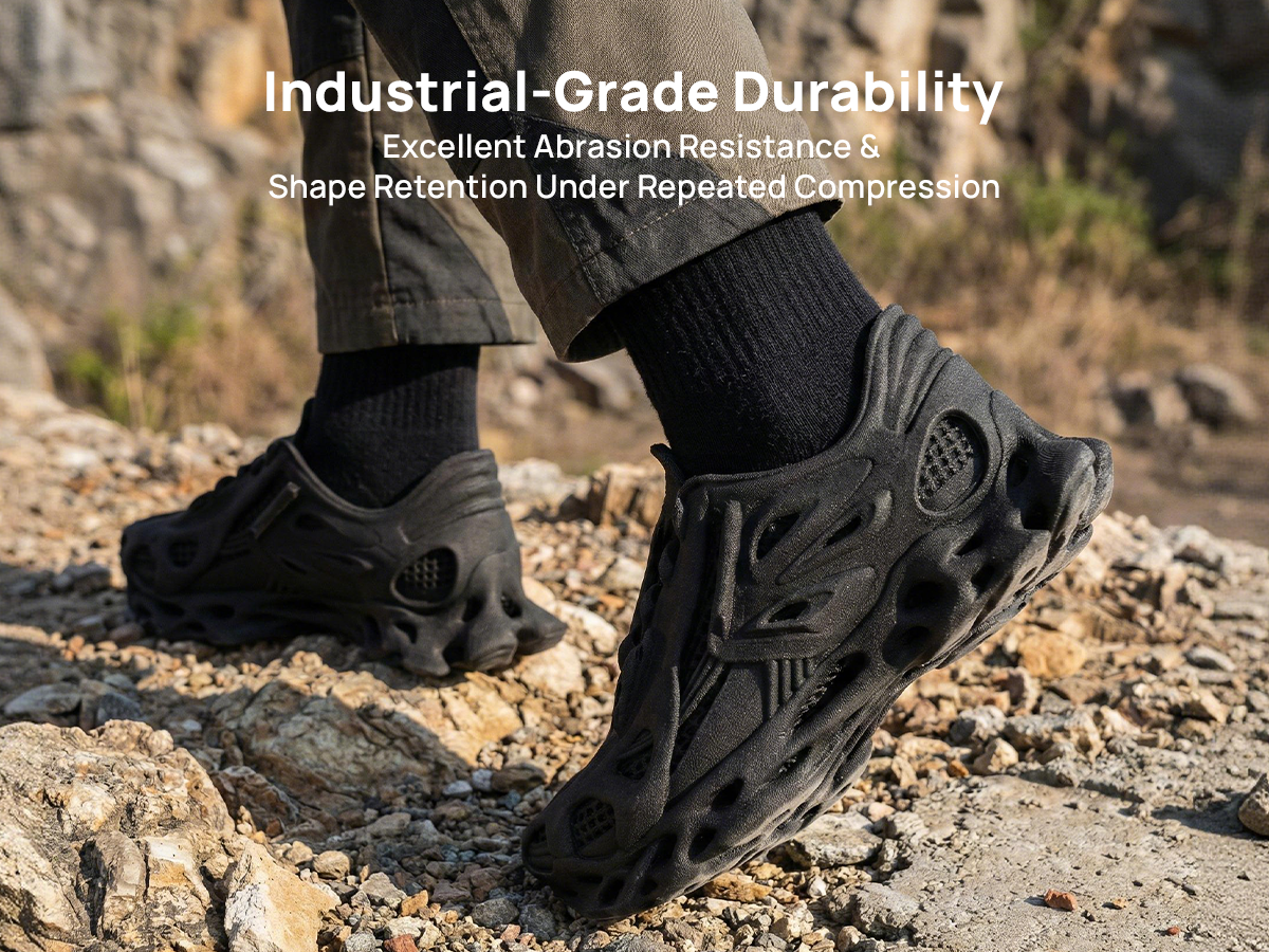 Unlike standard foams, it ensures midsoles and insoles offer a noticeable "bounce" that enhances long-term comfort and athletic agility.