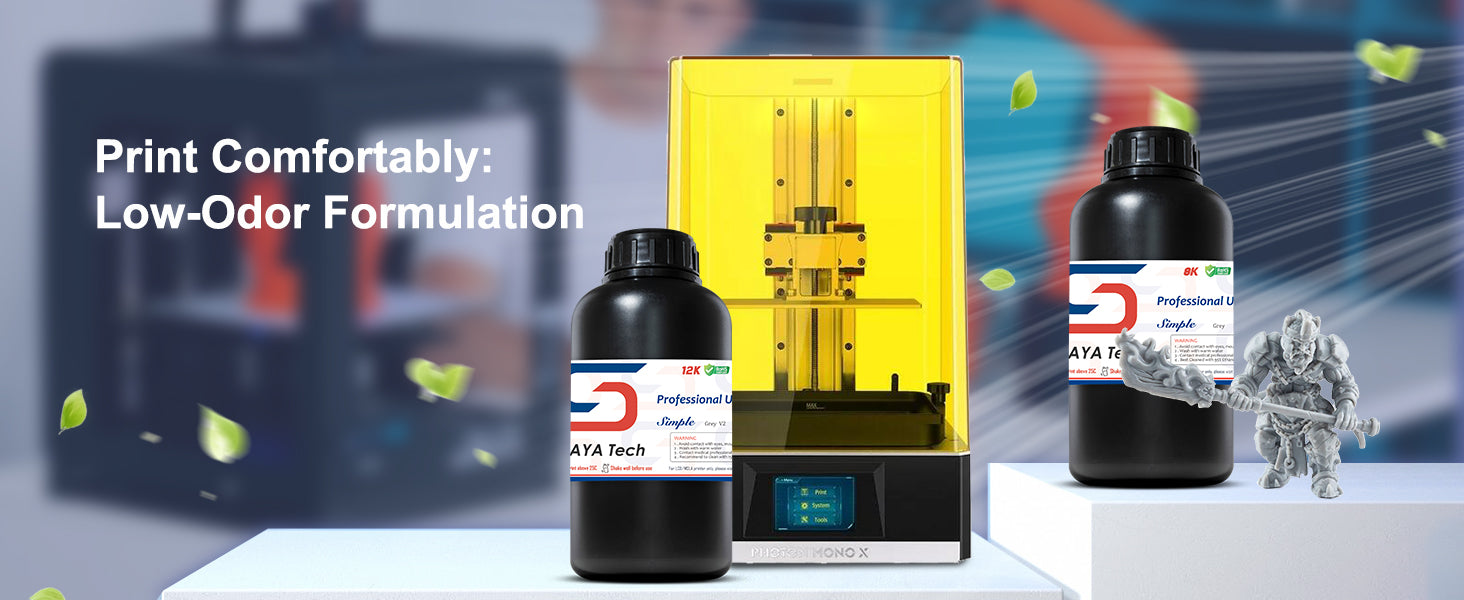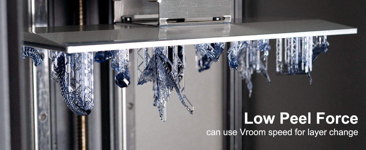 - Low viscosity with low peel force - Simple has the lowest peel force and allows for high-speed printing and for large printers.